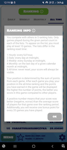 Be smart and try to outwit the others! The ranking score will tell you how good you are. It is especially designed to reduce – like in bridge tournaments – the effect of luck in order to better measure your strategic skills: it depends only on how you perform against those players who played or will play (ranking updates continuously) the same games in the same position as you.