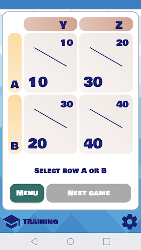 In this app you will play a series of toy games, each of which representing a particular situation of strategic interaction. These games are designed to extract and mimic the strategic part of many real-life interpersonal interactions where some mixture of conflict and cooperation is present.