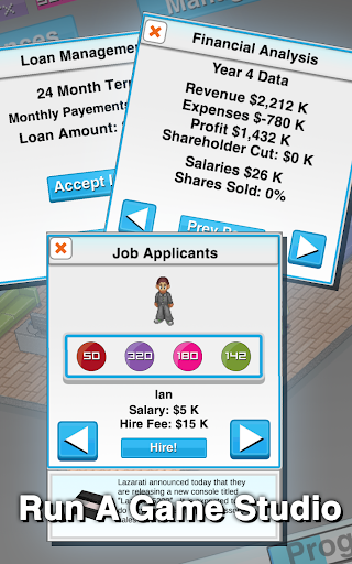– Run a studio! This business isn’t just about making games, it about staying afloat! Have total control of your company including how much investors should own of it.