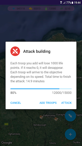 Add buildings in real locations around the world without moving from the couch, use them to recruit troops that will allow you to invade your enemies, and become the greatest emperor on the planet.