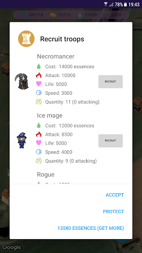 Each building allows you to recruit different troops like vampires, paladins, necromancers, horsemen and many more!