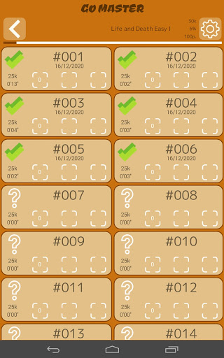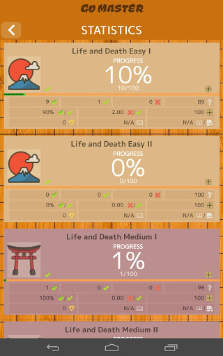 ◼ PROBLEM COLLECTIONS 📕: Go Master has several collections of problems with various levels of difficulty. Try to complete them with the highest number of Tsumegos solved on the first attempt. You will find mainly life and death problems, but also Yose problems.