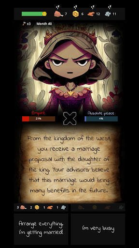 🤴Greetings, my lord. Your time has come! He takes the reins of the kingdom and decides the path you will take it on. Will you be a king who seeks prosperity through alliances or will you create an empire at the expense of neighboring kingdoms?