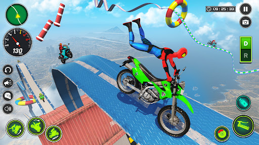 Enjoy & drive the most famous Motorcycles through challenging roads in superhero motorcycle- offline games. In this mega ramp stunt bike games you have 30+ challenging levels of gt superhero motorcycle offline games. So, start your day with a new impossible journey of mega ramp motorcycle games stunts. Become a best bike racer in this superhero motorcycle games. In ramp racing games ultimate races you will race your gt bikes with speed racing to go with high sky jumping stunts on impossible ramps. Become a crazy bike driver and perform all the challenging ramp stunts in this superhero motorcycle games to ensure that you are the best bike stunt master. Unlock all the rest of superhero bikes and get ready for extreme racing on impossible tracks in real ramps- bike games.
