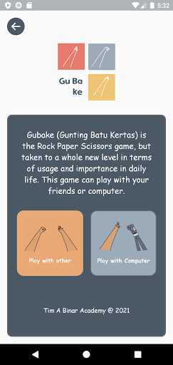 Gu Ba Ke (Gunting Batu Kertas) adalah aplikasi permainan batu, gunting, kertas dengan sesama pemain atau bersama komputer.