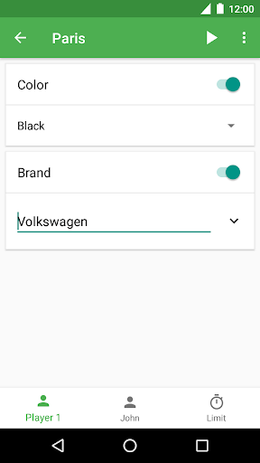 Players register their guesses before the game. You can guess the color of the cars, their make, or both. Each time you see a car, one of the players report its characteristics.