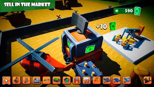 As you establish various mining facilities like Mines and Drilling Rigs, you’ll be able to delve into the depths of the Earth to extract precious resources such as Gold Ore, Iron Ore, and Oil. Refine these raw materials into coveted Gold Ingots, Iron Ingots, and Fuel, which serve as the foundation for crafting high-quality weapons and fueling your vehicles. Experiment with different materials, such as Logs (Wood), Metal, Gold, Oil and Paint to master the art of creating unique firearms. Develop powerful weapons like the AK-47, pistols, Bats, Dynamites, Shells, long-range rockets, Jeeps, Tanks, Fighter aircrafts, and Helicopters. Build specialized facilities like Warehouses, Smelters, Pumps, Sales Centers, Machine and Tank Factories, Supply Centers, Hangars, Conveyors to support your expanding operations and ensure a steady supply of resources.