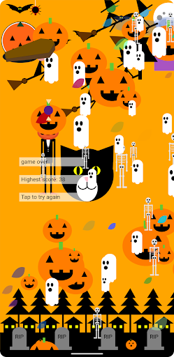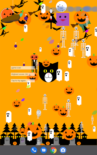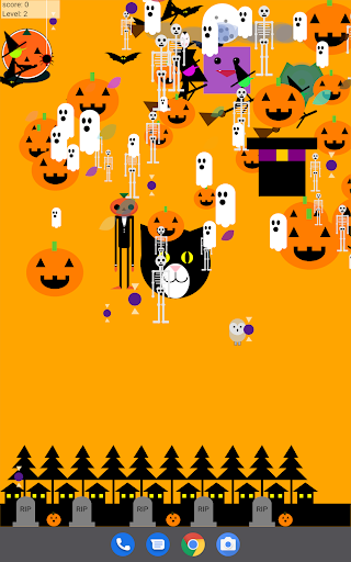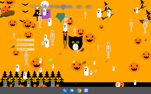 Form the makers of the Egg Game just in time for Halloween we have spent a few years into working on this spin off for a Halloween themed Egg Game without the Eggs but this time though for a different but yet interesting experience we travel to the Halloween Season. We are excited that you can now play our new game with all the latest new updates right on your mobile device. Now with over 111 objects in the game between 6 black cats, spiders, candy, pumpkins, ghost, leaves, 5 witches, a monster and skeletons also a moon and 5 bats you are for sure in for a treat! We have animated objects now in the game for a very tricky but fun experience. We have upped the complexity of the game by making the game more harder. Check out how many Candies and Leaves you can catch with a touch of a finger with us try and avoid the obstacles and keep up to date with new updates and information comes you can stay updated right from your device. Check out our game today where you can get all of the Candies, pumpkins, ghosts, skeletons and Leaves right from your device anywhere you want even with offline support. Avoid the boss Cats from trying to take your hat of Candy. Added headstones, owl, monsters and clouds as well as animations added for a more Spooky experience. This Halloween you will be able to Enjoy this spooktacular experience just in time for Halloween this year! Get all of the Halloween feels that you love! Happy Halloween Ha ha ha!