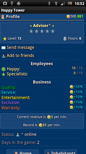 At first glance the game may look like a boring and monotonous one. But after building the tenth storey, establishing the business and moving into you will have to look after different sides of the game taking into consideration income and spending.