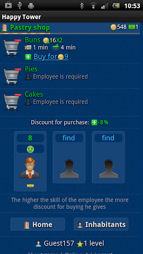 Keep in mind that the virtual workers of the Happy Tower have different talents and preferences as in reality. Somebody is good at selling of biscuits others are trained to work in entertainment.