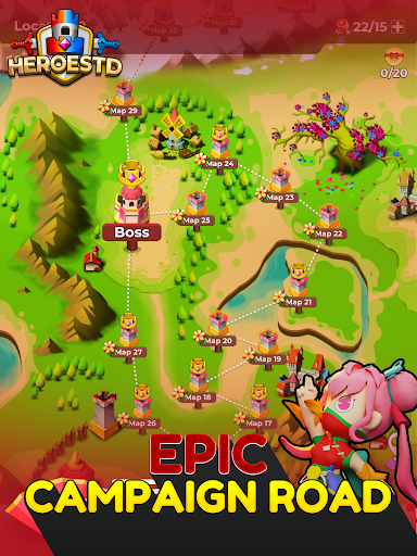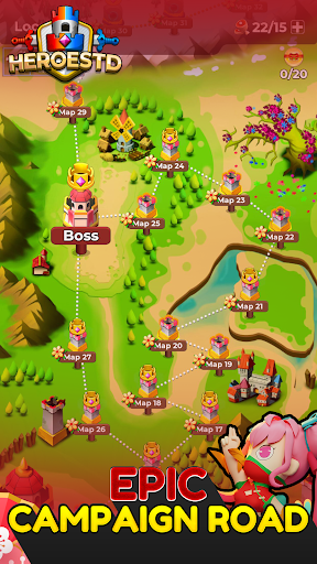 Master Diverse Game Modes: Engage in various game modes, including player-vs-player battles, cooperative gameplay, World Boss, Tower Climbing and challenging campaign missions. Participate in in-game events and quests to earn additional rewards in this immersive NFT gaming experience. Experience real-time battles and competitive gameplay in HeroesTD.