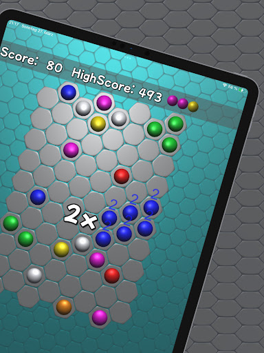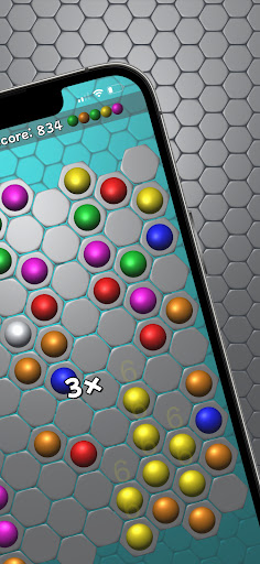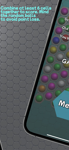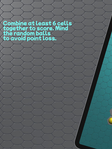 Hexagon Cells is a logic puzzle. Goal is to score points. To get points you have to combine 6 balls of the same color together.
