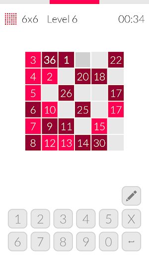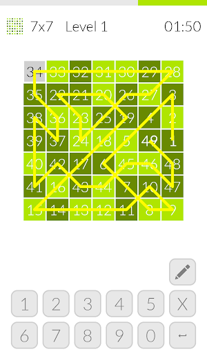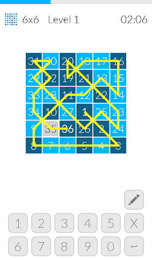 Hidoku is a logic puzzle that requires you to fill a given grid with numbers so that cells with consecutive numbers touch each other horizontally, vertically, or diagonally. By doing so you reconstruct a journey around the grid starting at number 1 and ending on the highest number (depends on the size of the board). Both, beginning and end of the journey are presented in the grid as well as other numbers that direct you how and where to start the puzzle.