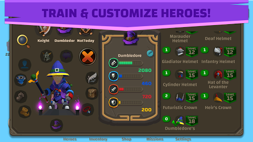 Fight on forests, mountains, wastelands, deserts, and underworlds with heroes in your Holy Army to complete adventures! Train new heroes with various classes to expand your Holy Army. Get ready for an epic journey against hordes of orcs, skeletons, evil wizards, vikings, pirates and other nasty fiends by customizing your strategy, heroes and commanding your troops!