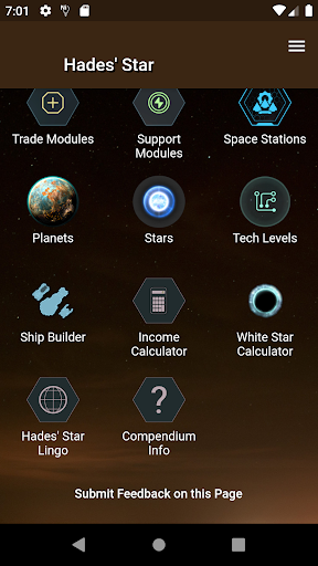 Facts, figures and other information is ready at your fingertips in the Hades’ Star Compendium, as well as several interactive tools – Income calculator, White Star calculator, Ship Builder, Tech Levels and more.