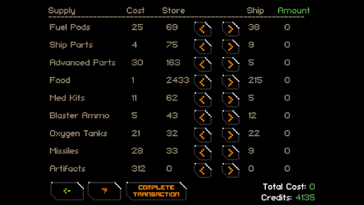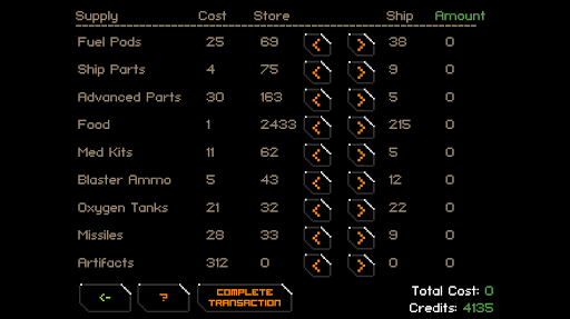 Manage your food, fuel, oxygen, ship repairs, credits, and much more to keep your ship running and crew alive