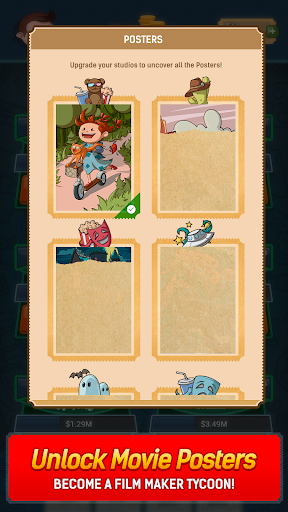 – Bank: Buy film reels to earn more profit or make use of boosts that help you skip days or increase the speed of all studios.