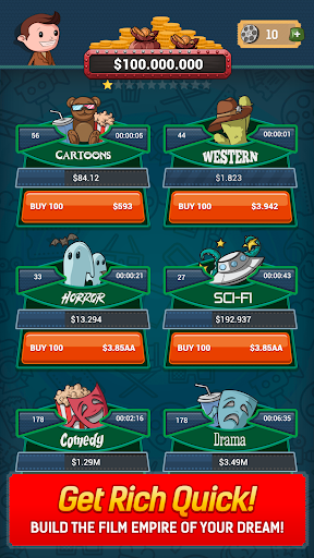 Create your own movie empire and become the #1 film tycoon in Film Industry with Idle Film Empire: Clicker Manager Tycoon. Start from scratch by creating and selling cartoons and movies, then buy more studios & hire big-time directors and make blockbusters to earn hundreds of millions of dollars.