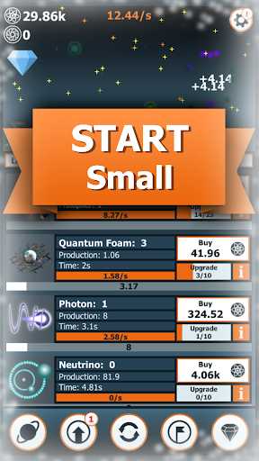 First, you have to gather matter yourself by tapping, but once you’ve got enough matter to create a couple of particles in your universe, they will collide and automatically produce more matter for you!