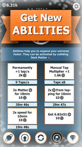 • Obtain Dark Matter and use special abilities like automatic tapping, speeding up collisions and many more!