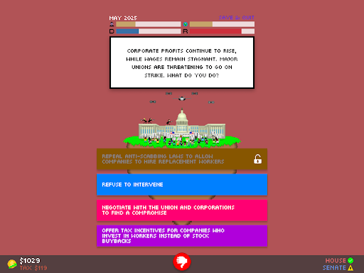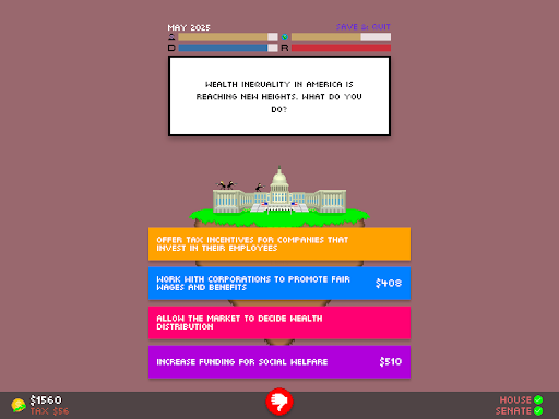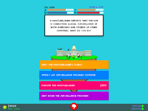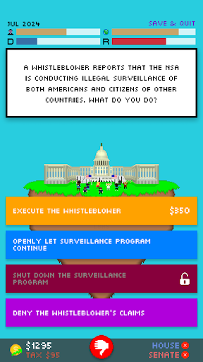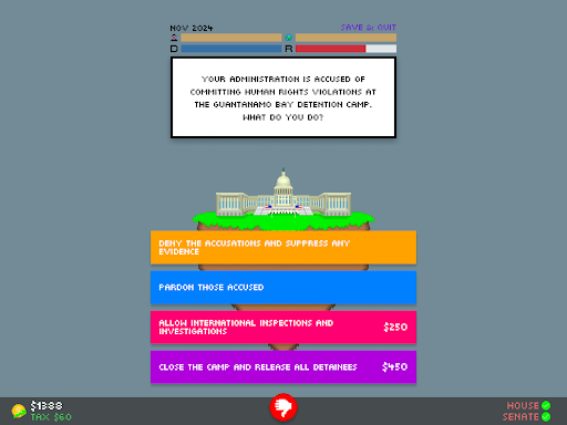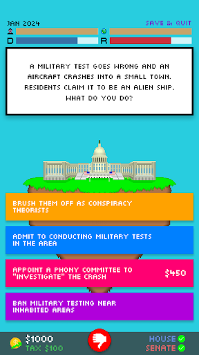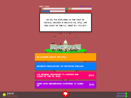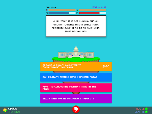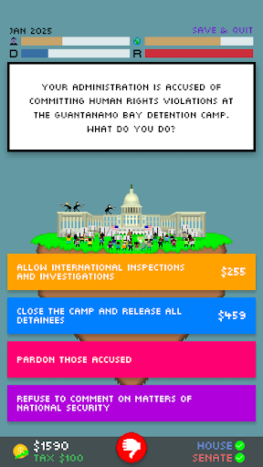 I have taken the feedback received by Impeached: Be The President constructively, and have changed many things to make the gameplay experience better. Enjoy!