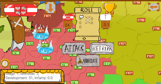 Choose between a classic game or over 200 nations from throughout Europe’s history or two other alternate history timelines! Grow your empire not only through conquest but also through internal development and diplomacy. Attack others to gain their land and fortify it to make sure it stays a permanent fixture of your domain.