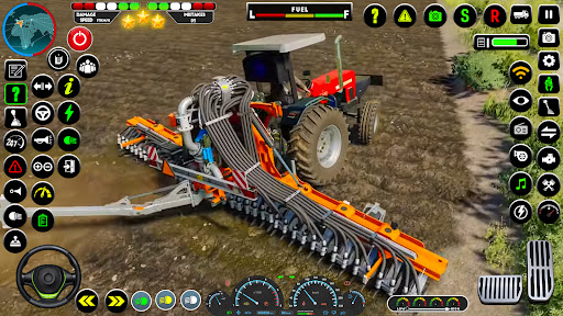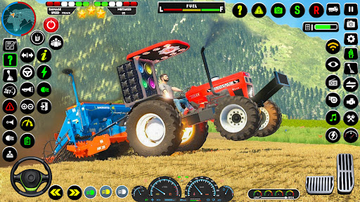 Are you want to experience the realistic graphics of farm game environment and multiple vehicles controls in tractor driving 3d transport game? Then play this cargo tractor driving farming game to fulfill your desire. In tractor wali game you will also drive and control new indian tractors, drone, gadha gari and more in this real tractor simulator drive game. There is real graphics of indian farming tractor, harvester, plow, seede, rotavator in indian traktor 3d games or punjabi tractor game 2021. You will also face different challenges in this farming tractor simulator 3d game such as save cotton farm from animals and controlling heavy machines. Tractor driving games offer various levels, ranging from village farming to more advanced tasks like watering crops with drones and selling goods using traditional methods like the gadha gari in desi tractor games. To water the green fields, operate a drone with realistic controls. For plowing tasks, drive a variety of tractors including modern tractors, cargo tractors, chained tractors 3d, and luxurious tractors. You will also explore different environments, such as mountains, offroad and village in tractor driving farmers games. In Indian tractor farming game 2018 you will learn tractor driving skills with realistic vehicle controls and get detailed environment in tractor trolly games.