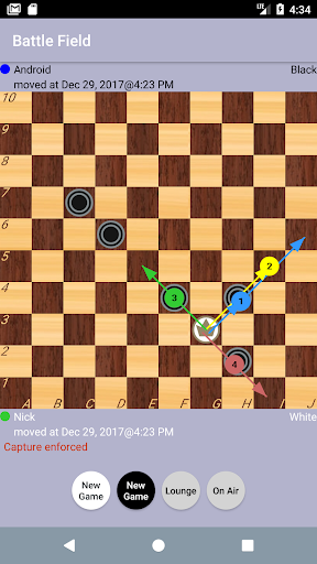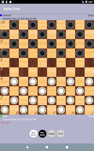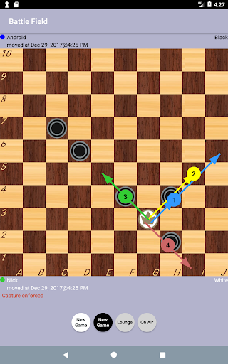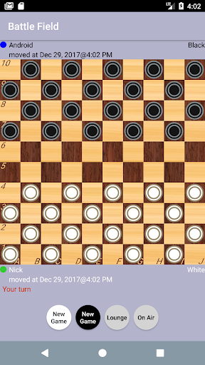Strategic Board checkers game for two players or computer on 10×10 squares board with additional features: