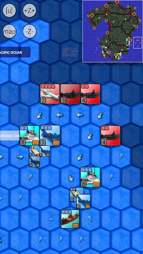 + Settings: A ton of options are available to alter the feel of the gaming experience: Change difficulty level, hexagon size, Animation speed, choose icon set for units (NATO or REAL) and cities (Round, Shield, Square, block of houses), decide what is drawn on the map, weather and storms, and much much more.