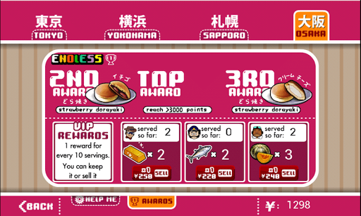 After you have accumulated enough profits, you can then take a ride to Yokohama and expand your shop from there. Travel from Yokohama to Sapporo by boat. Then fly to Osaka from Sapporo to serve a whole lot more delicious foods!