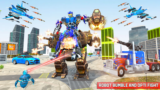 Be the part of this futuristic robot air jet battle and perform robot car games missions to kill gangster Bike robots. Use of destructive weapons will lead you towards success in this robot Bike battle of police car robot transformation game.Play the ultimate robot fighting game enclosing the transforming robot police car wars and grand robotic battle of mech air jet warriors in best robot games with Army jet robot transforming games.Enjoy multiple robot transforming missions of robot Air Jet shooting to eliminate all enemies in the city battle or robot car games.Transforming robots in Air jet robot game gives the realistic robot wars experience that will make you addictive for playing multi robot police bike transform battle in this robot car transform games that offers unique transforming experience of robot car games.Show your super powers in futuristic robot battle & Tackle the unending robot fighting as mech warrior robot in this city battle.Have fun with robot Police car transformation and drive robot car in robot car transforming games.