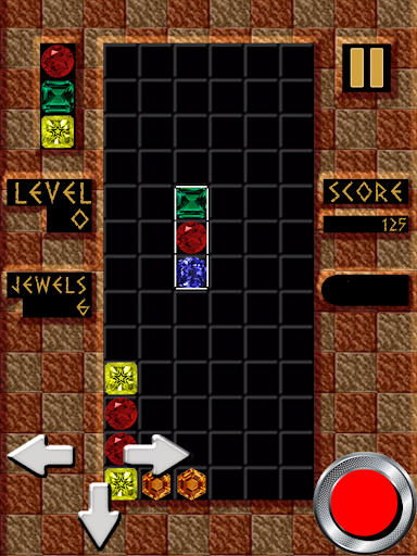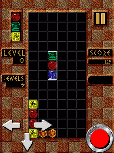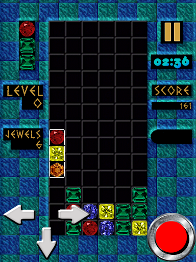 Each of the pieces that appear are formed by three jewels which can be rotated by pressing the button on the right side. Our goal is to match three or more jewels of the same type both horizontally, vertically or diagonally.