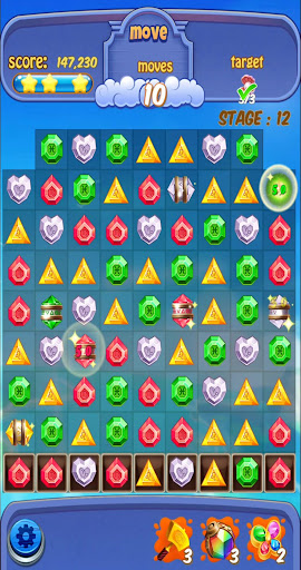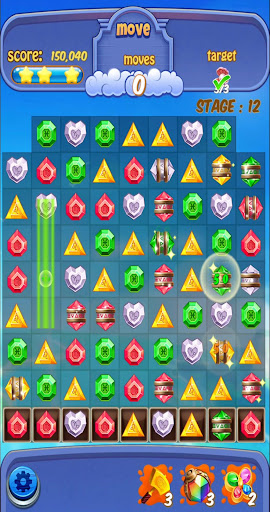 3: Make the jewels pop down to last line to pass the level.
