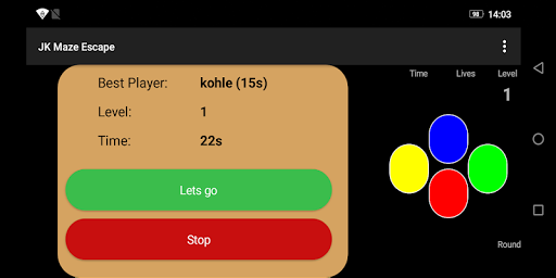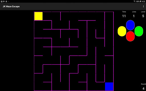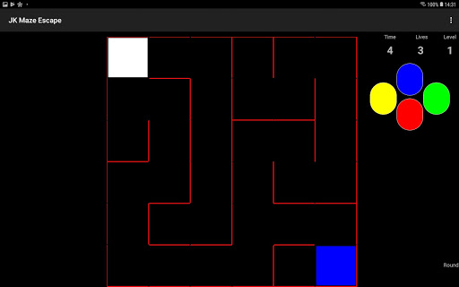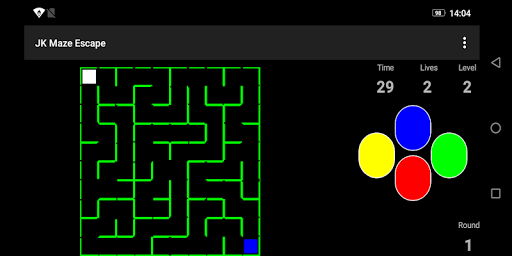The aim of the game is to reach the blue rectangle in a given time and get as much round points as possible. In the maze you move the “walker” with the cursor buttons. After you reach the blue rectangle you get a round point and start the next level.