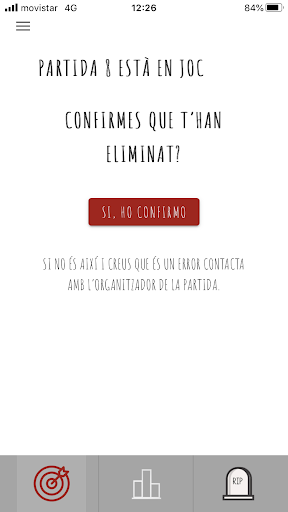 Quan la partida comença, a la pantalla de la diana t’apareix la persona o objectiu que has d’aconseguir eliminar amb el seu sobrenom, la foto i la descripció. Ves amb compte perquè algun altre participant et buscarà a tu!