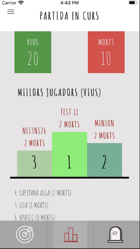 A l’apartat d’estadístiques, pots veure en tot moment quants jugadors hi ha vius i quants d’eliminats. També, pots veure la classificació en directe dels 20 primers participants vius que han aconseguit eliminar-ne més. I, en finalitzar la partida, el participant viu que ha aconseguit eliminar més jugadors serà el guanyador.