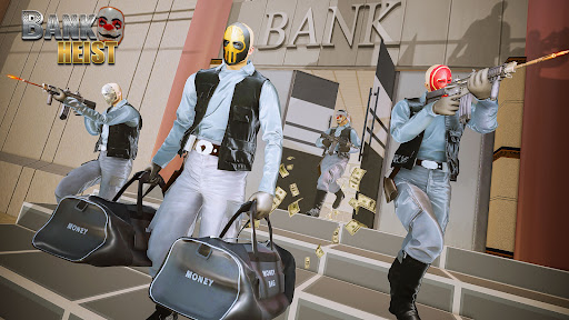 In smiling Joker Heist: Bank Robbery Gun Games use long and short-range modern weapons In the bank inside because countless cops are standing and walking with multiple loaded weapons out there.