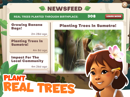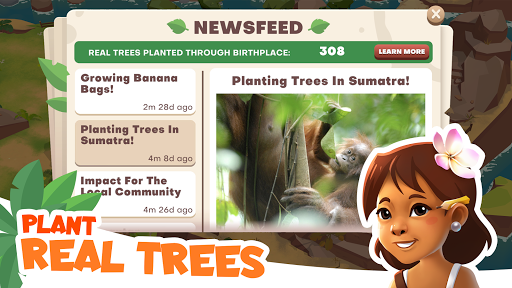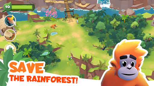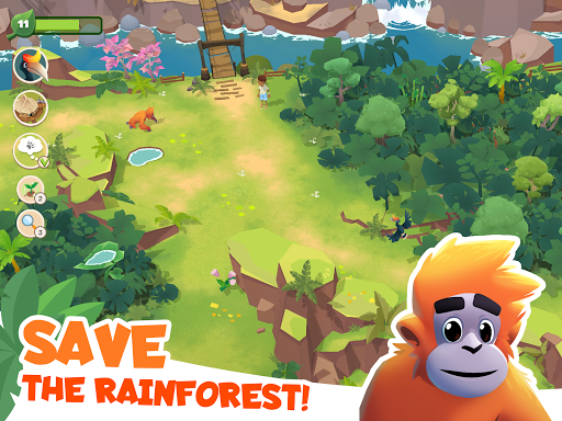 Orang and his friends need your help to replant the jungle! The more trees that you plant, the more animals will return to the jungle! Collect them all! Discover a restaurant, build a raft and a watchtower. Chase away excavators and illegal loggers with chainsaws. Meet Stripes the tiger, and Splash the elephant!