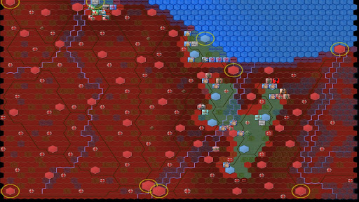 + Settings: Various options are available to alter the look of the gaming experience: Change difficulty level, hexagon size, Animation speed, choose icon set for units (NATO or REAL) and cities (Round, Shield, Square, block of houses), decide what is drawn on the map, and much more.
