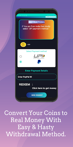 Withdrawal –> You can redeem Your coin from two withdrawal method Paypal & UPI under our withdrawal policies.