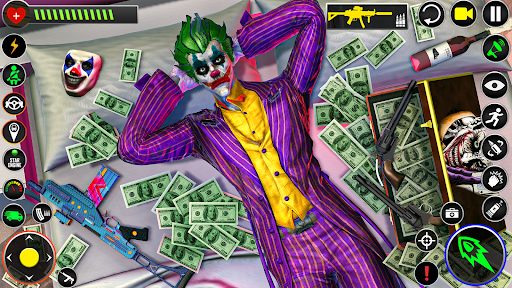 In Killer Clown Joker Games, the scary clown mafia and his gang robbers will fight with the police and gangster of super simulator city. Killer Clown Mafia Crime City is an epic bank robbery game and gang shooting game between city people, police cop,and gangster. Be the scary Joker and horror clown to compete with your enemies in Killer Clown Bank Robbery Games. Boost your mafia heist skill to escape fast from super simulator city. Many horror clowns and jokers clowns waiting for the perfect move to fight gang robbery by killer clown shooting games. Joker must be ready to fight the super simulator city mafia in killer clown bank robbery games. Scary joker games have many guns similar to any killer clown gun shooting game. Just grab your gun and start gun-shooting mafia missions in clown jocker games.