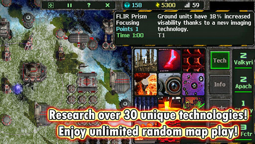 As your empire grows you can research technologies to guide the focus of your strategy. Dominate on all types of terrain, send aircraft to bombard the enemy to weaken its infrastructure, control the shores with a naval fleet of ships and subs, and transport units into the fight to finish the mission! You can even manufacture and launch game changing weapons such as ICBMs.