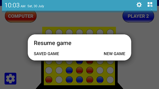 If the game is restarted after being closed an option to continue with the last saved game is offered, alternatively a new game can be started.