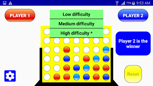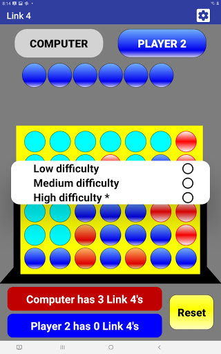 – Computer play has 3 difficulty levels (Low, medium, high).
