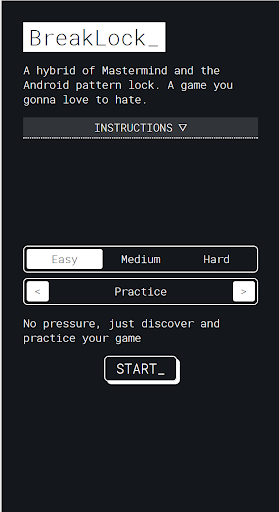The difficulty setting changes the amount of dots to connect. Easy is 4 dots, medium is 5 dots and hard is 6 dots.