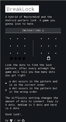 Link the dots to find the lock pattern. After every attempt the game will tell you how many dots you got right.