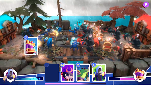 The goal is to defeat the enemy and protect your kingdom. Destroy the enemy tower with the help of various hero cards. Each hero is unique and has its own characteristics: movement speed, impact power, impact and damage radius.