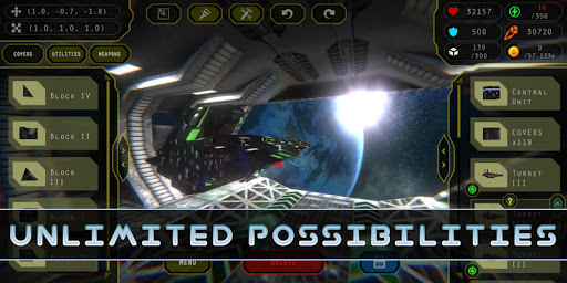 – 50+ modules for building ships (covers, utilities, weapons)