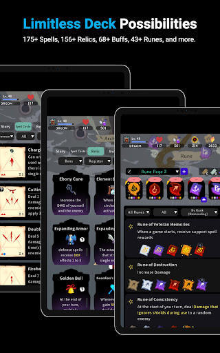 Lost Pages boasts an incredible number of various magic circles, artifacts, and runes. Depending on the user’s choices, the deck changes freely. Such variation and freedom keep the gameplay constantly engaging, combined with the user’s growing stats, offering unimaginably diverse experiences.