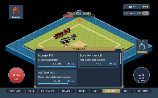 2. Press the pull button on the right to produce units and place them in the optimal position to defeat the monsters.